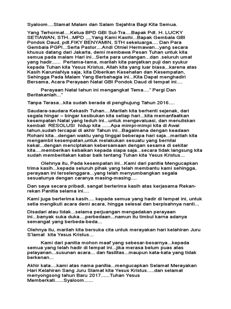 Kata sambuten panitia natal gbkp. Maybe you would like to learn more about one of these? Check spelling or type a new query. We did not find results for: